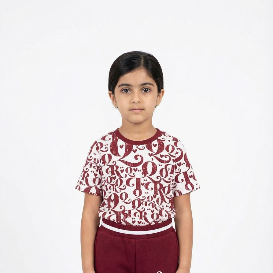 A classic House of Cultures design blending comfort with cultural expression. The all-over “Q” calligraphy print celebrates Qatar’s proud identity, paired with rich burgundy joggers detailed with the signature emblem. Soft, breathable, and beautifully crafted for stylish everyday wear.